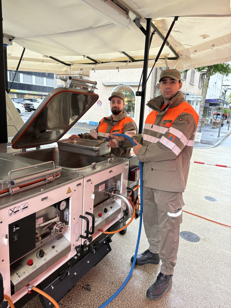Für das leibliche Wohl sorgte unser Küchenteam, das die Gäste direkt aus der modularen Feldküche kulinarisch verwöhnte.